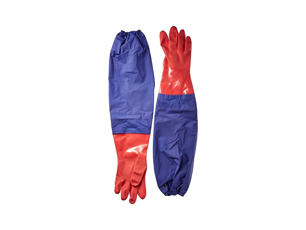 Speciální rukavice pro akvaristy od fy Coralife jsou na délku paží s elastickým upevněním, aby dobře držely a nepadaly. Rukavice měří celkem 70cm (28") a jsou vyrobeny z velmi kvalitního jemného PVC materiálu s rukávy z pevných vláken. Jsou vyrobeny tak, aby umožnili akvaristovi efektivně pracovat v akváriu bez toho, aby došlo ke kontaminaci vody. Rukavice ochrání celé paže v suchu, takže zabrání jakémukoliv kontaktu pokožky s vodou a jejími obyvateli, což zabraňuje případnému zápachu č