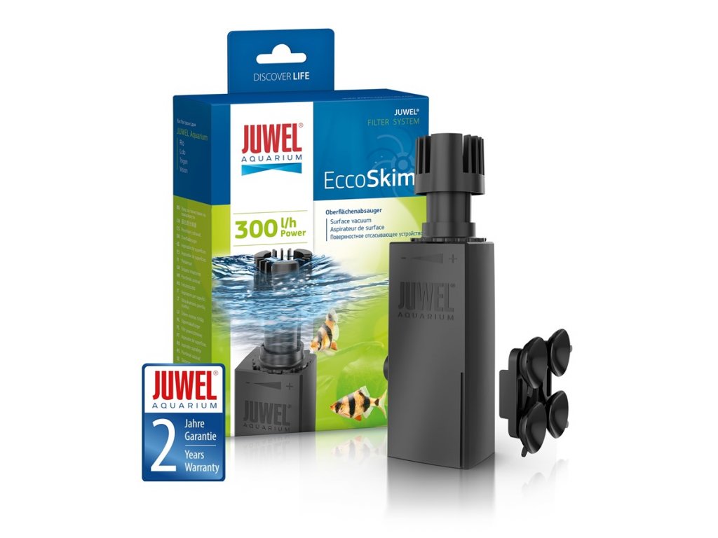 S výkonom 300 l / h pri spotrebe iba 4,4 W zaručuje JUWEL EccoSkim efektívne úrodu povrchu pre sladkovodné i morské akvária.