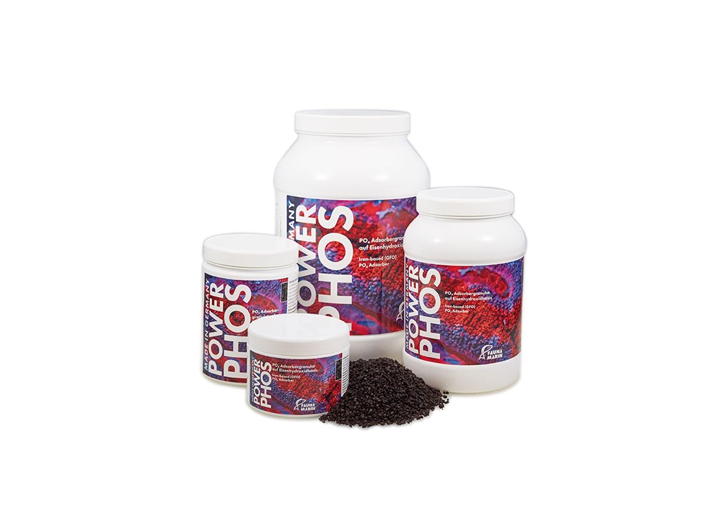 - Začnite s 100 ml Fauna marin power phos na 300 litrov vody.