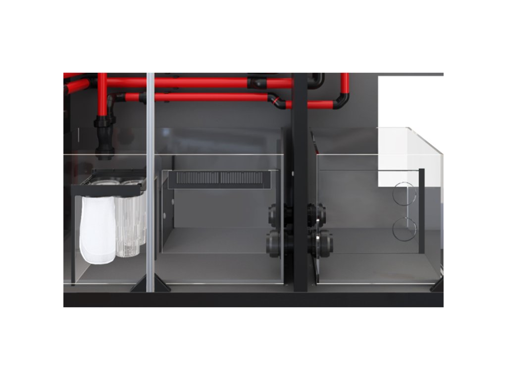 Systém REEFER™ 170 G3 Deluxe je vybavený moderným tichým prepadom s presným nastavením prietoku a bezpečnostným núdzovým prepadom. Súčasťou je optimalizovaný sump, ktorý poskytuje dostatok priestoru pre odpěňovač, filtračné médiá, reaktor aj automatické dopĺňanie odparenej vody.