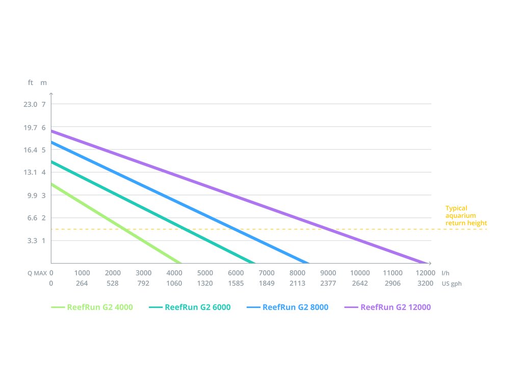 ReefRun G2 12000 | 12000 l/h | 5,9 m | 33–105 W | Veľké nádrže a reef tanky s nárokmi | ReefBeat, plánovanie režimov, spolupráca s ďalšími zariadeniami |