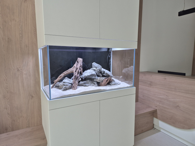 Súbor fotiek pri založení a pravidelnom servise akvária vykonávanom pre zákazníka.