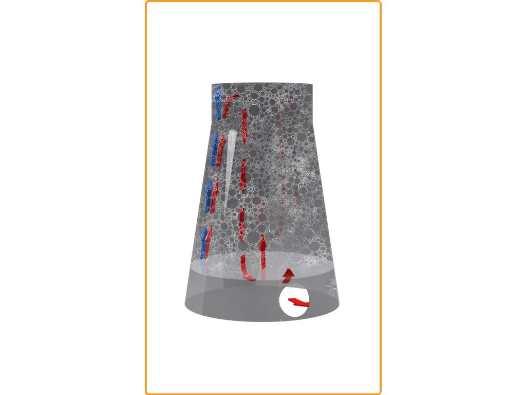 - Kónický tvar tela umožňuje stabilné formovanie peny
